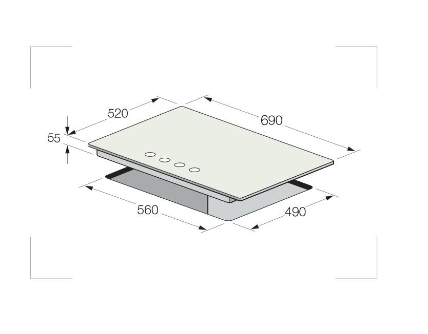 Plaque de Cuisson Vitro Crystal FOCUS F410B 4 Feux 70 cm Noir